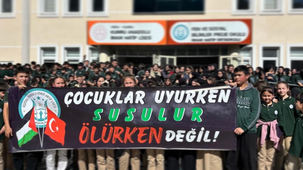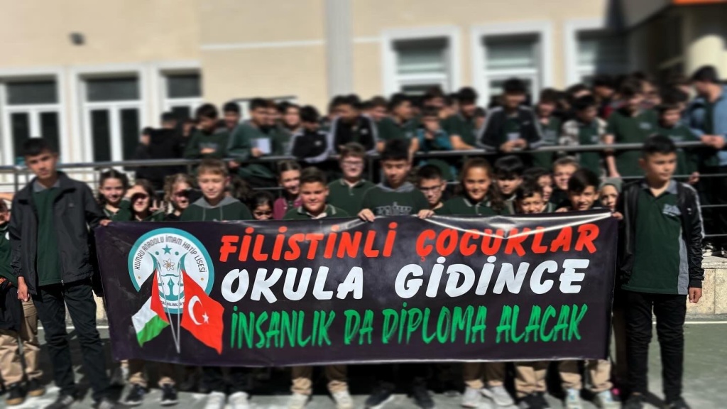 7 Ekim tarihinde tüm Türkiye’de olduğu gibi okulumuzda da Filistin’e destek amacıyla eşzamanlı etkinlikler gerçekleştirildi. Öğrencilerimiz ve öğretmenlerimiz, mazlum coğrafyalarda yaşanan acılara dikkat çekmek ve dayanışma göstermek için bir araya geldi.